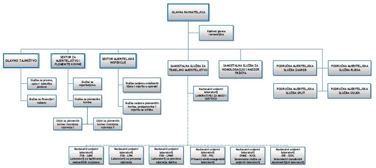 Uredbom o unutarnjem ustrojstvu Državnog zavoda za mjeriteljstvo (NN 97/20) za obavljanje poslova iz djelokruga Zavoda ustrojene su sljedeće unutarnje ustrojstvene jedinice: